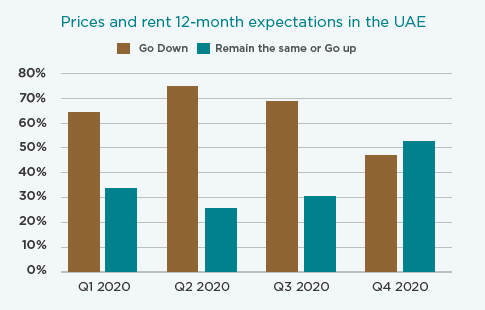 With more respondents (53% versus 47%) expecting prices and rents to be stable or go up in the next 12 months. This is a sharp turnaround from October 2020, when only 31% of respondents expected prices and rents either to be stable or rise.