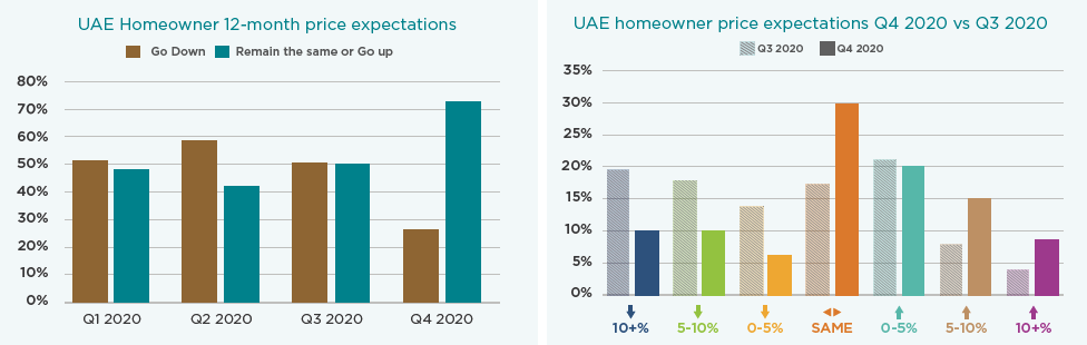 This marks a hugely significant improvement in sentiment. In Q1 and Q2 2020, the majority of homeowners expected price declines over the following 12 months. At the end of Q3 2020, responses were split 50/50. The large positive skew is also clearly demonstrated in the contrast between Q4 and Q3 2020.